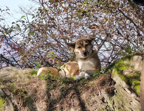 去南岩宫的路上,碰到一只安静的狗子在晒太阳,呆萌可爱: