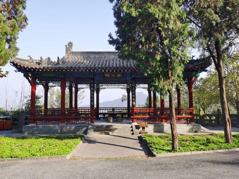 道观外围的文化长廊依山就势而建,由访幽亭、思凡亭、点化亭、成道亭连为一廊,廊中有手绘百孝图,色彩鲜明,形态逼真,让人在游览中感悟人生,修身养性。