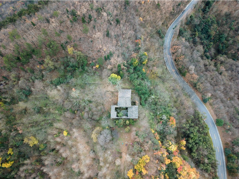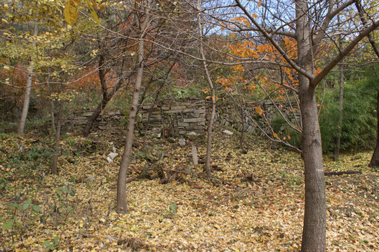 在一片很大面积的绝壁下面就是乌鸦庙遗址,现在种了很多银杏树,武当山的动八景“乌鸦接食”以前就在这。前行下来到公路,到了一个大转弯处沿台阶路上去就是太子洞,如果从路口的小路下山就是去紫霄宫福地门。