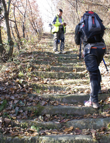 跨过天津桥,从龙泉观右侧继续走古神道,有一段保存完好,上面有民宿和武馆,继续走古道从太子坡左侧大门进去。