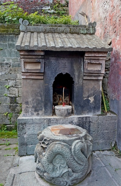 黑虎庙(财神庙),武当山的黑虎庙很多,这是最大的。神龛下面有佛家的万字符(卍)。快到黑虎庙要经过黑虎桥。沿途有几处民宿和养生馆,各有特色。