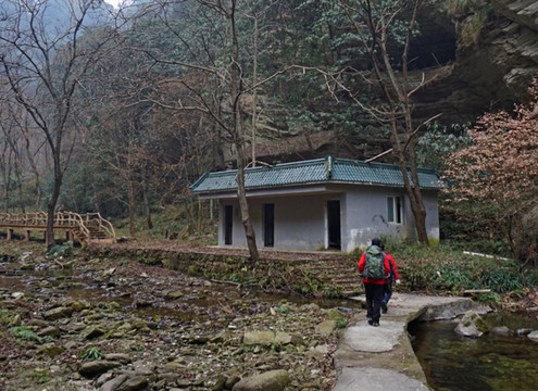 玉虚岩下的剑河继续上走不远,有个值班室,顶上一点的岩洞推测是古籍记载的武当山早期佛教遗址---法华岩。