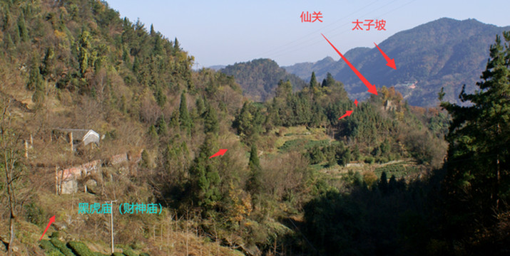 4,称钩湾、福地居、灵山居等民宿群、财神庙、仙关、玉虚岩