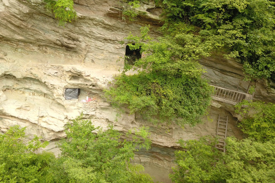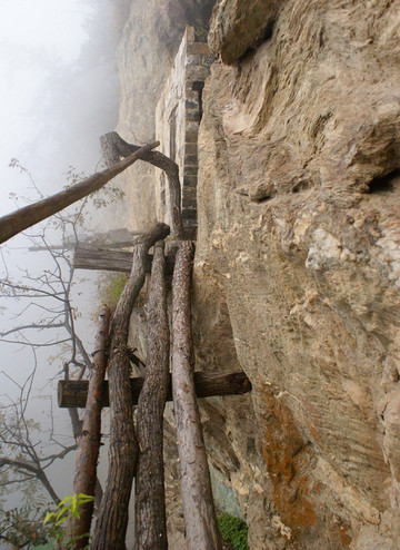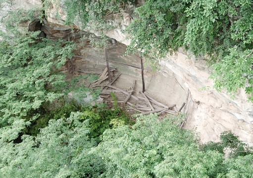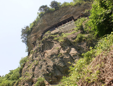 41太玄洞,在索道半途可看到北侧太玄洞,有5层,明代2篇游记记载白玉岩和太玄洞的密密麻麻的如同蜂巢的道房,应该就是太玄洞、白玉岩。。