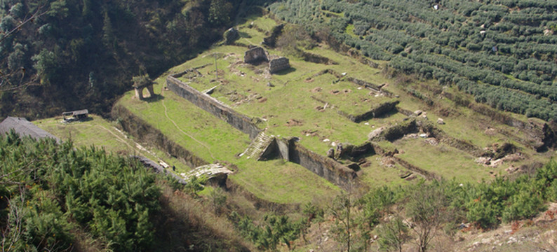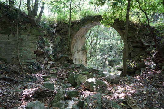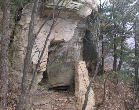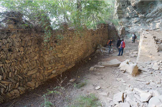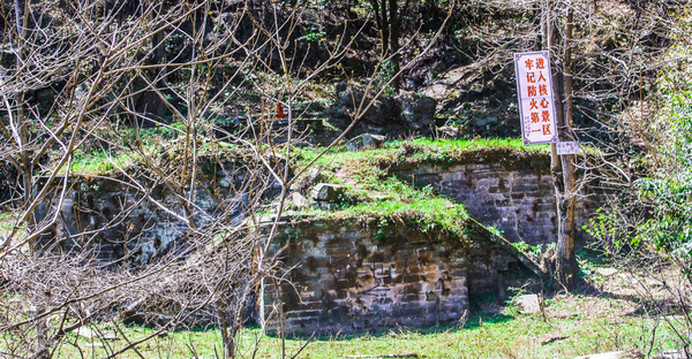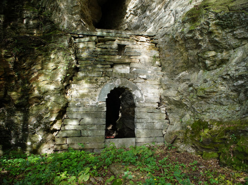 金华洞,在仁威观到隐仙岩之间蝴蝶谷(金华洞沟上去经过赵家垭500米到右侧山沟,存有部分土墙及2无头神像,旧有2层楼。。