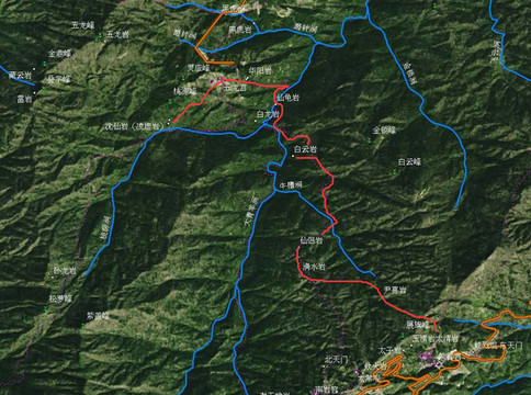 白云岩,《武当福地总真集》:白云峰,在大顶之西。紫盖、皇崖,东西互拱。下有一岩,名曰白云,虚寂轩豁。傍一石穴如星,名日星牖。俯视万虎涧,松风哮吼,涧云交飞,与道合真,方可栖息。陈希夷避名,三迁于此,次后五龙徙之华岳。任自垣编撰的《敕建大岳太和山志》记载:“仙侣岩在青羊涧之上,白云岩之左。