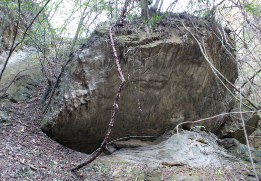 现判断为青羊桥往南岩方向开始上山处左侧巨石,形如巨龟,头部朝向青羊涧上流。