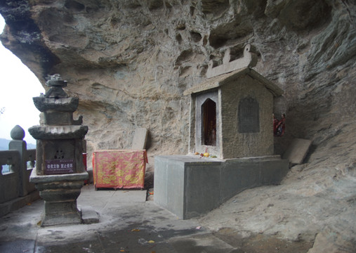 开凿于元代的元统年间,即公元1333年,是武当山著名道人张守清修炼清微雷法和祈雨的场所。在南岩去太常观路中右侧,中有“灵池”。岩内有石殿一座。殿内供邓天君像,人身鸟面鹰嘴鹞眼,手持雷锤雷钻。