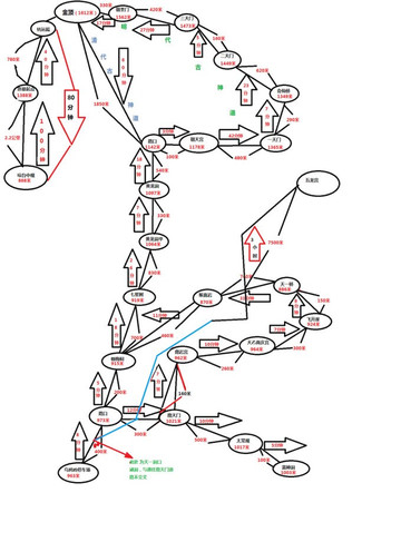 下面的图是我从网上找的路线图,上山的时间基本上差不多的。可以参考
