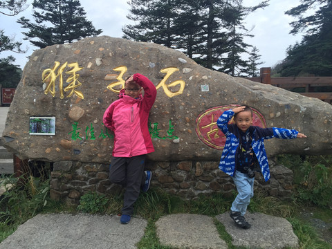 10/5号;神农架小雨有雾,早餐;每人一碗正宗的炸酱面,包括小孙子,小家伙的胃口一点不比哥哥差,所以他精神也特别好,到了景点,就自己跑,还一个劲的给大家拍照;到了神农架,照相机就一直是他背着,里边的照片都是他的作品,看看还不错,开始问他要当几流摄影师;他说要三流,因为三比一大:后来才搞清楚;要当一流摄影师,好像有那么一点天赋;