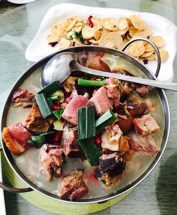 恩施土家腊肉:恩施乡下过年,家家户户都会杀年猪,新鲜猪肉切块撒上盐腌制,然后放在火炕上用柴火熏制而成。用来熏肉的柴火也有讲究,一般用松木,把晒干的橘子皮扔进火堆里,这样熏出来的腊肉才香。恩施的腊肉皮是软的,不像有些地方的腊肉皮很硬,恩施人吃腊肉的方法也很多,配上不同的食材,炒炖蒸煮,样样俱全。