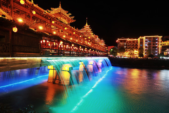 恩施女儿城和奥山世纪城晚上7点左右有免费演出,建议在恩施市区住宿时可以住在附近。