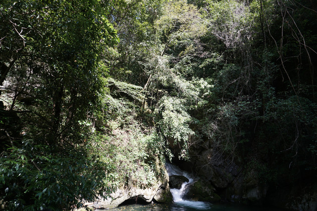 驱车去最远的天生桥景区,由于国庆,车子排队到山下,我们在半山腰的农庄停车,步行2公里不到到景区,这明显比排队上山快多了。只要下山回来在那吃午饭,停车免费,否则收费30元。天生桥就是个看瀑布的地方,空气不错,景色和看过的山水差不多。