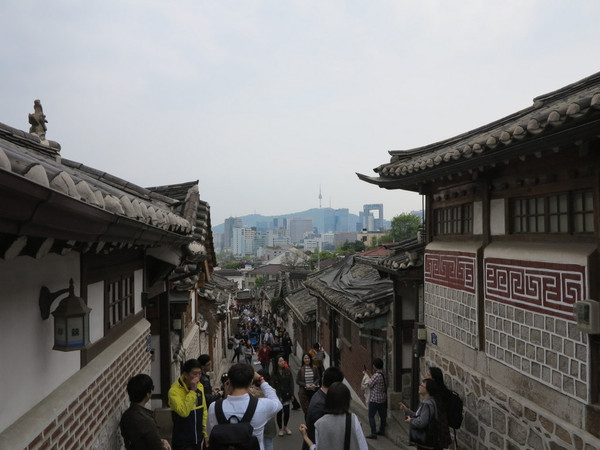 北村韩屋就是这里的一个村落,高低起伏在山路上,有点我们古镇的味道。