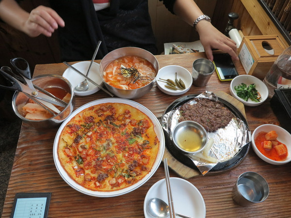 按照地图找到服务中心,由于早餐过于精细,老婆已经饥肠辘辘,打探好道路直奔书上介绍的美食而去,韩国富二代开着宝马敞篷跑车一样和我们一起排队,看来有一套,先来牛排,冷面,绿豆饼,吃个半饱。