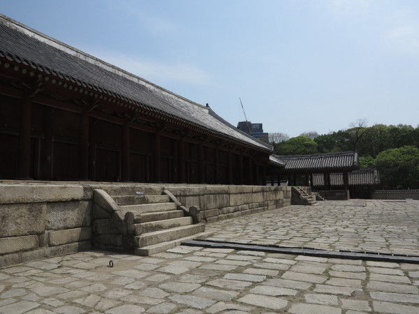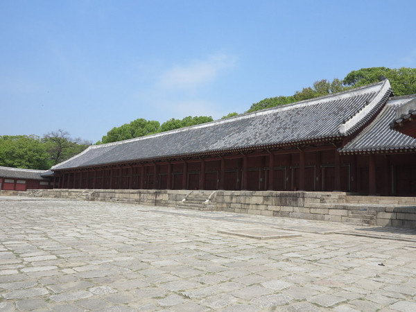 导游汉语一般般,但描述还算清楚。宗庙是现存最早的和最可信的尊崇儒家的皇家宗庙,用来祭祀朝鲜王朝(1392-1910)的历代祖宗。现在保存着16世纪时的原貌。现在这里经常举行有音乐和歌舞的宗教仪式,这样的传统起自14世纪。这里的大门就透着些许古旧,朝鲜历史其实很长,从萁子朝鲜开始也有几千年的历史,但是讲解员无奈的说,我们只有朝鲜王朝留下的东西,再早的类似高句丽之类的都没有了,也算遗憾。这里也是世界遗产,包括正殿和永宁殿等建筑物,经常举行有音乐和歌舞的宗教仪式,由于沉船事件,现在取消了一些表演,无缘一睹。