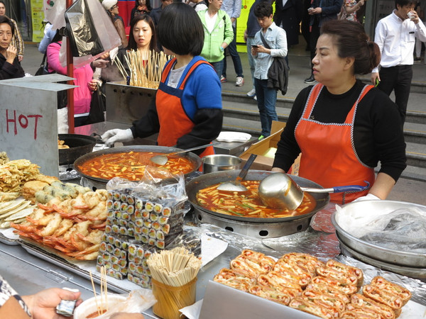 五点半回到了市区,明洞就在边上,人山人海的购物人流,和老婆吃吃炸猪排,寻觅好吃的冷面,顺路换换钱,了解一下韩国的两替换钱处。