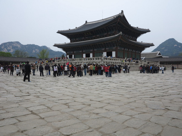 景福宫基本是按照我们的故宫建造,内部不算小,也是一层层的宫殿,但是建筑都是最近修的,老的基本都毁于大火,看过故宫这里没有太多兴奋点,但韩国的建筑特色这里还是做了保留,火炕烟道,可以悬挂的大门。这里的游客相当多,有免费的汉语导游,走马观花一圈下来一个多小时。