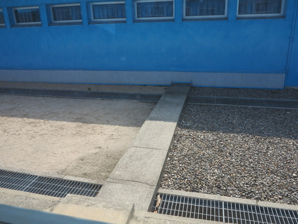 不多时车就到了一个大房子前,大家排队进入,一出房子,后面就是新闻里一直看到的韩朝边境线上的蓝色房子,士兵介绍完这里的大概开始可以拍照,但不可以拍韩国这面,只可以拍朝鲜,一通狂拍。
