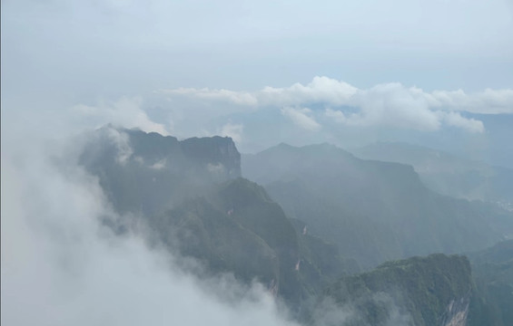 天门山(门票225元)。上山的索道在市中心,单程30分钟左右,可以纵观整个城市,由于雨雪天,所以视线并不清晰,陡峭的山脉也全然不见,只有一片白茫茫。天门山上的雪很大,分三条步行路线,东线西线和中线,我走了东线1500米,折返再去西线,为了天门山寺。山路非常不好走,结冰路滑,时刻要提放摔跤,但还看到有穿高跟鞋来爬山的奇葩,叹为观止,这可绝对寸步难行啊。能见度也很低,当终于来到云雾缭绕的天门山寺,觉得非常肃穆和庄严,寺庙相当开阔,气度不凡,钟楼鼓楼在云雾中遥遥相对,当然低温也让人冻的索索发抖。