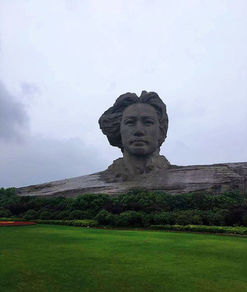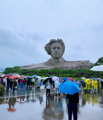 先去看一看橘子洲头,门口有旅游的车,排队那个长,我们就冒雨一路走着,当站在毛主席青年时的雕像前,还是被震撼到了。那天雨下的挺大,参观的人络绎不绝。