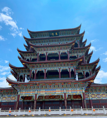 始建于明朝万历四十三年,万,乃数之大者,邑从此而大。采用内九层,外五层的结构,寓意“九五至尊“。万楼目前没有人收门票,我们很顺利就进去了,只是延着最下层转了一圉,站在那里仰望,非常壮观。