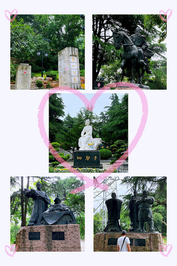 “烟雨莽苍苍,龟蛇锁大江,把酒酹滔滔,心潮逐浪高“。望着缓缓而流的长江水,感受大江东去的岁月流长。走过1670米的长江大桥,前面便是龟山。龟山为武汉名胜古迹较多的山体之一,拥有悠久的历史,为历代兵家必争之地。我们从南门进去,看到有鲁肃墓、三国人物的雕像、向警予烈士陵园、红色战士公墓。