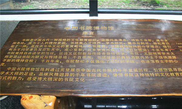 中国书院博物馆,中国唯一一座展示中国书院史和文化教育史的专题博物馆,2012年6月14日在湖南长沙开馆,位于中国规模最大、修复最好、保存最完整的古代书院--岳麓书院之内。