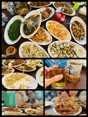海鲜好吃,橘子冰饮也超级好喝!对了,海螺也好好吃(¯﹃¯)