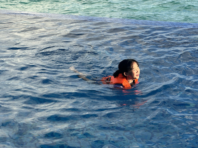 刚到酒店迫不及待请求换装备下去无边泳池撒欢啦!
