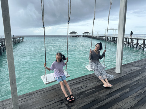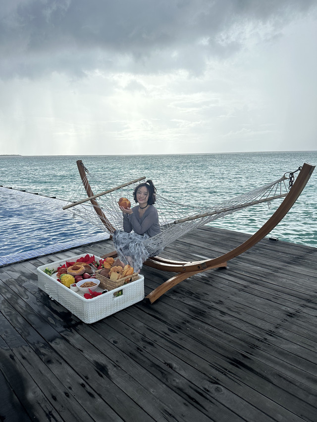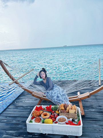我们今天跳岛去的马步岛,每人上岛费50马,小孩30马,我们10人给了440马!岛上特别适合拍照打卡,专门为一生要出片的中国女人安排的行程。JASON团队一共安排了4个人为我们服务,准备了三大箱子的食物和冰饮作为午餐。拍照时间,JASON加3个小黑都化身专业摄影师帮我们拍照,包括拍照引导,情绪价值拉爆!