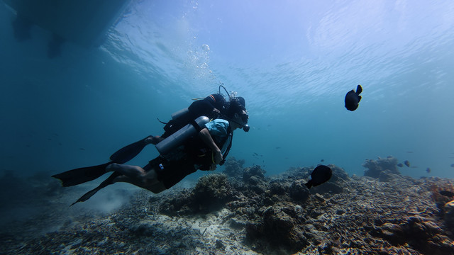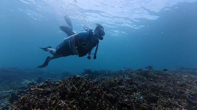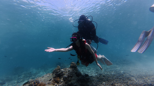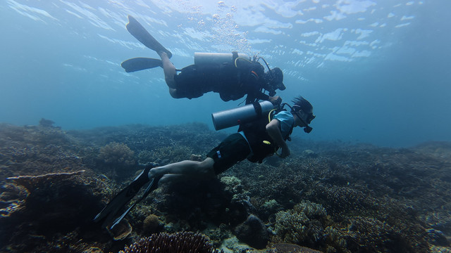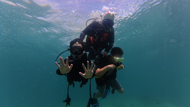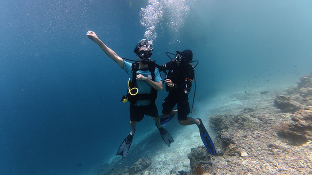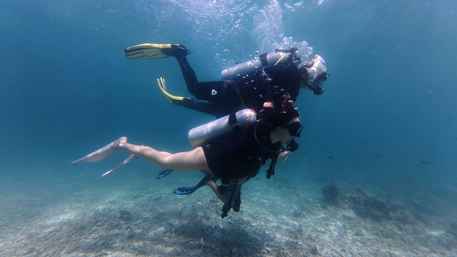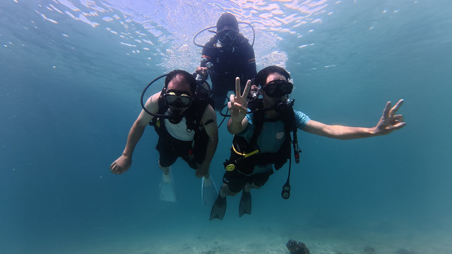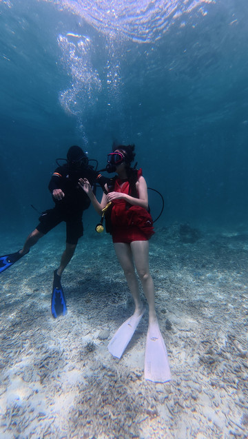 就是这次深潜,直接给我晒黑几度!都怪防晒准备没做好,妹妹还穿了防晒丝袜,我是真勇啊,穿个普通泳衣就下去了,上来直接当地人没错!以后深潜必备:凹造型的帽子,白色水母衣,防晒丝袜,具备这三样就极其出片了。另外有自己的水下运动相机的可以带自己的,教练他们的设备我觉得不够高清呢!