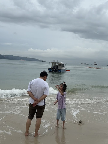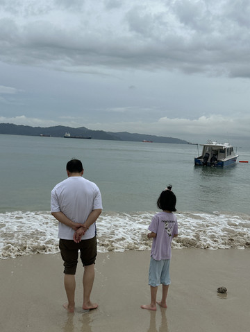 穿上袍子实在热得不得了!所以没逛一会儿大家就出去了!接下来去沙滩,雨停了,但是天空还是灰蒙蒙的,这是我们的第一站海滩,质量不太好,但孩子们还是很开心。