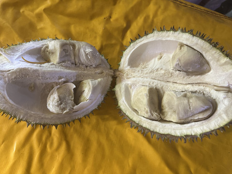 没有猫山王,买的本地榴莲黑珍珠,虽然颜色是这种泛白的,但是不苦,还是挺甜糯的。