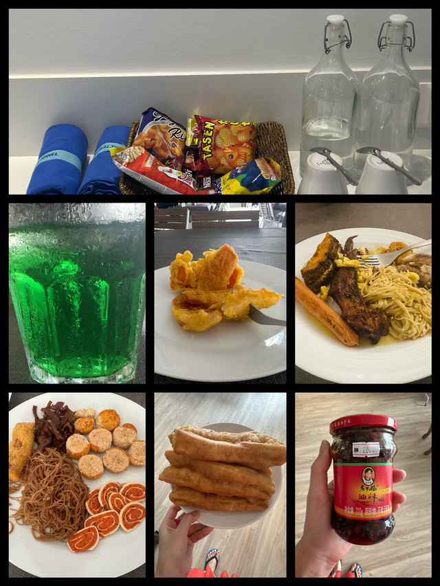 不得不说,詹全记他们炸的油条也太好吃了吧!要不是要出海深潜,不能吃太饱,不然高低要干完!住仙本那这两天早餐都是海鲜粥和海鲜炒面。今天特意给我们加的油条,妹妹还去买了老干妈,这门一小瓶,20马,相当于人民币32元。O(∩_∩)O哈哈哈哈