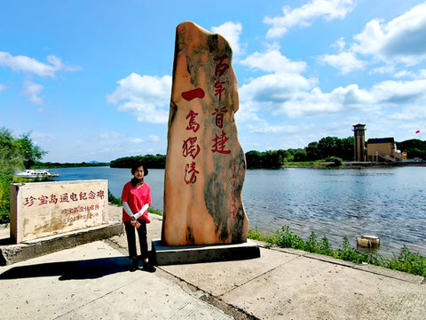 在景区中沿乌苏里江漫游,还能相继见到“一岛独胜 百年首捷”及珍宝岛全体官兵所立的“珍宝岛通电纪念碑”两座石碑。