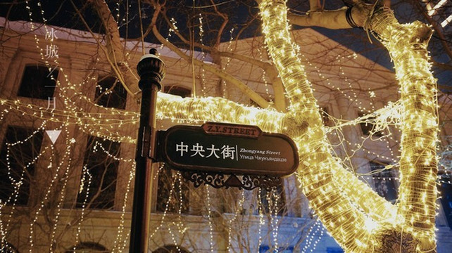 随着夜幕的降临,中央大街好像换了一身金色的外套,太璀璨梦幻了。