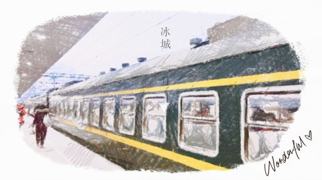 特别像是老式电影里火车的样子,对面的乘客是一大家人,老阿姨和女儿女婿们一路上喝啤酒配红肠,很有 哈尔滨 的感觉了!车厢里很暖和,特别是靠窗的位置,沿路还可以看到雪越来越厚,车窗外的风景也是很好~不过火车里停靠都是靠人工喊的,大家一定要自己注意听噢!