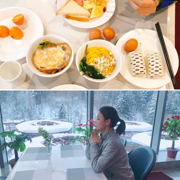 酒店房间忘记拍照了,就是双人标间,设施简单,但是还算干净。酒店早餐挺丰盛的,靠窗的位置还可以看到晚上泡温泉的池子。