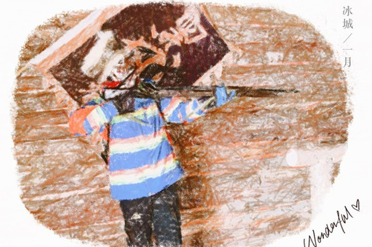 忘记带帽子和围巾的大男孩,在冰面上还是冻的瑟瑟发抖。