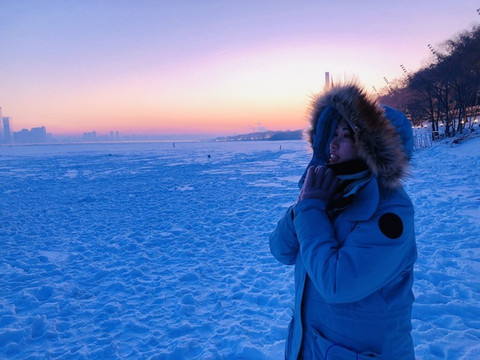 ?在江边溜达一圈觉得很是舒服,江边还有一小块地方是不铲雪的,我终于踩进了有点厚度的雪里真是很开心的哈哈