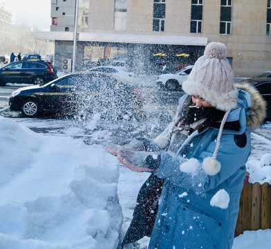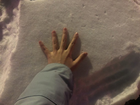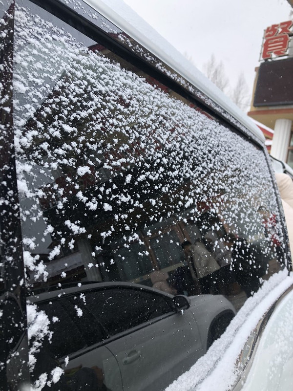 下了机场大巴,再转滴滴去酒店,在等车的车站我可终于能摸到雪了,二话不说直接上手了哈哈