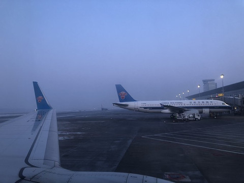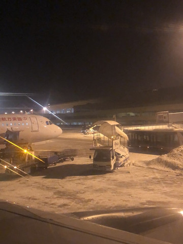 我们坐的是龙江航空,飞机估计到达 哈尔滨 以后就在机场过夜了,所以我们下飞机的时候没有廊桥