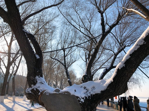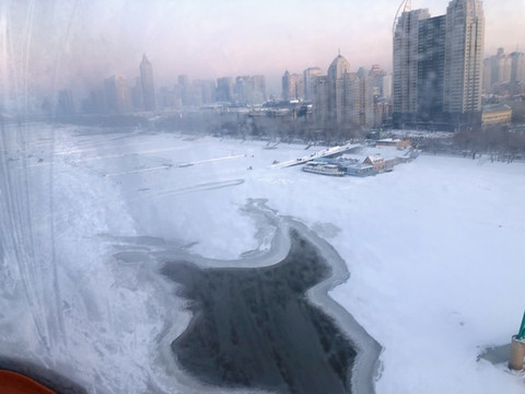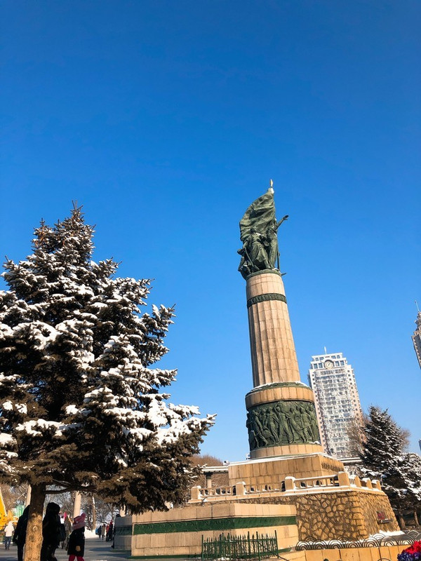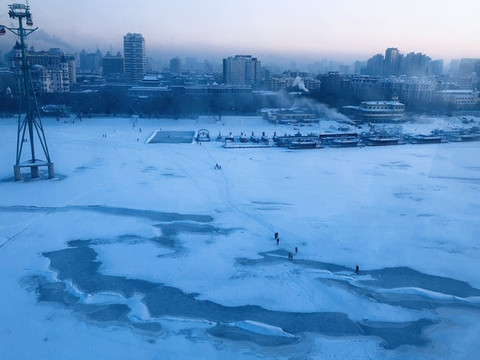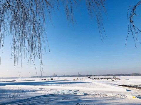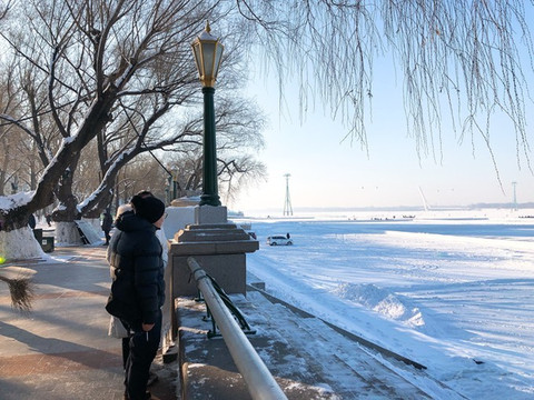 走到中央大街的尽头就是松花江了,这里有一座防洪纪念碑,后面就是松花江了。我表示当第一眼看到整个江面都是冰封冻住的时候真的觉得太神奇了。有点小遗憾的就是没有看到去看冬捕,应该很震撼吧。