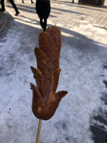 烤红肠, 哈尔滨 的特色食物,10块一根,走在大街上也真是人手一根,很好吃?