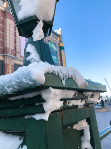 南方人真是看什么都新鲜,觉得这样的小积雪在路灯上也好好看哦