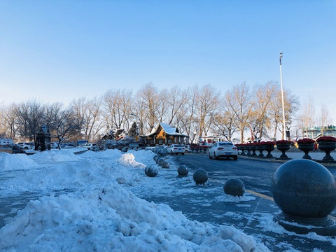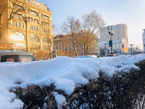 我们出发的前一天 哈尔滨 下了好大的雪,路上的积雪要及时铲走不然人踩多了化成冰就会很容易摔跤??♀?