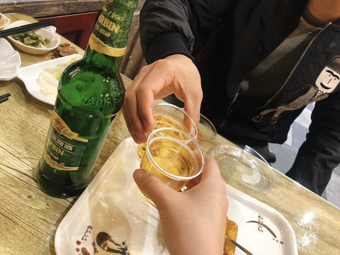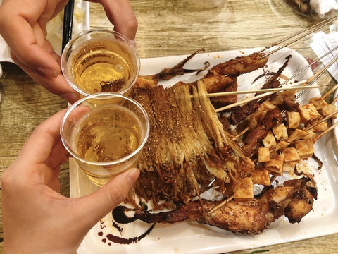 这一次我们住在了南岗区,想看看除了中央大街以外的 哈尔滨 。金刚山烧烤又恰恰在酒店附近,于是就毫不犹豫的盘了它,网红店真的是网红,真的能体验到 东北 人民对烧烤的热爱,不止游客,这家店本地人也好多,店面是整整的两层,排队的人挤满整个大堂,叫号都是50个号的叫,叫好了50个号就由工作人员领着去里面继续排队,喊号也都是拖着音响站在 高台 子上喊的,我觉得自己像是在大卖场不像是烧烤店?6点多来吃饭等了1个多小时吧就到我们了,不得不说这家店虽然火爆可是服务人员态度一点都不差,个个干活麻溜也热情,活该他火爆!