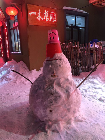 各个店家门前都有这样一个堆好的雪人,萌萌哒