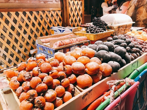 特色冰水果也是同理,尝了冻梨和冻柿子,要把他们拿进来放在冷水中浸泡,抹去外面的冰就可以吃了,个人更偏爱冻柿子,入口像软绵绵的柿子冰沙一样